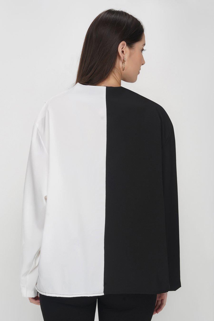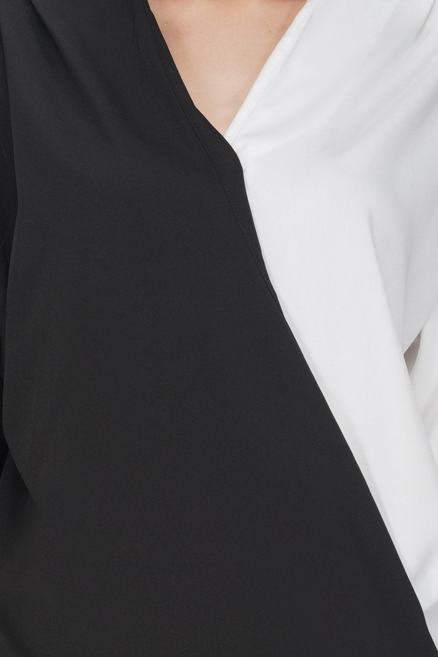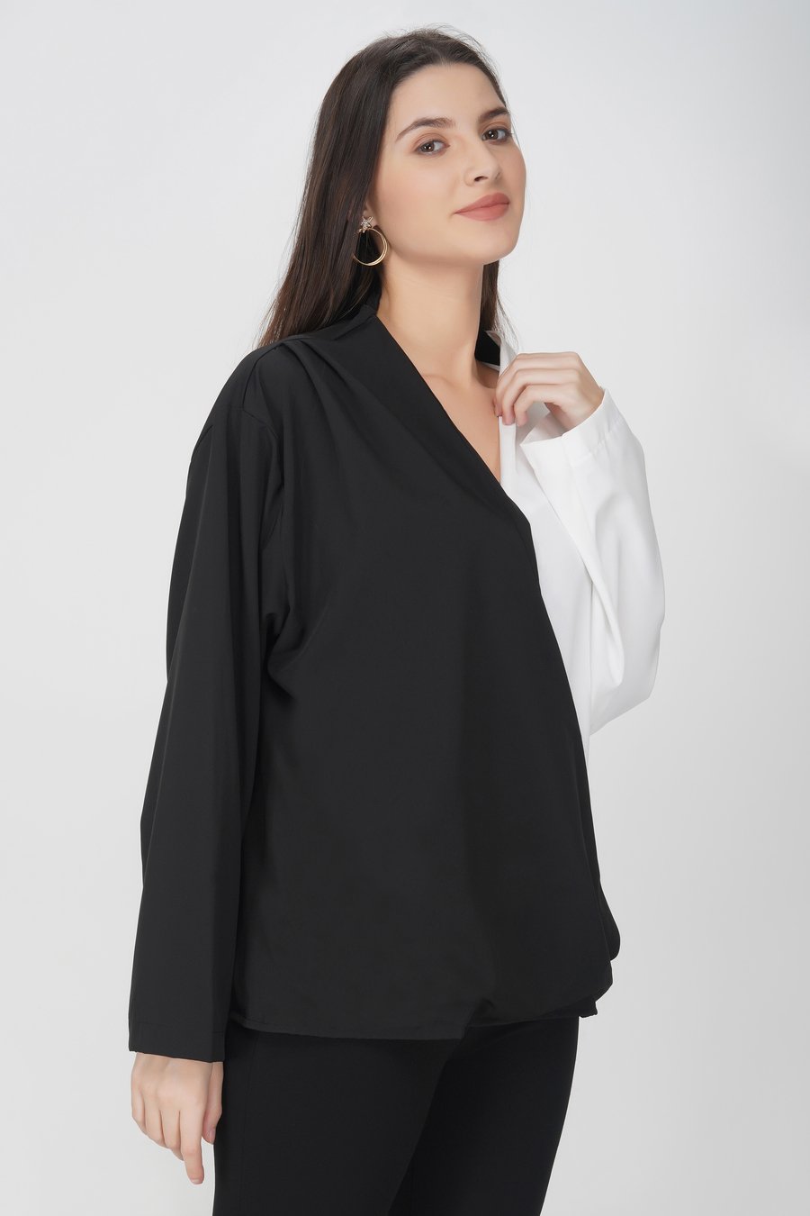 Black and white top, has a crossover detail on the front forming a V-neckline, has a full sleeves. Complete The Look This ultra-feminine top from Kovet is going to fetch you a zillion compliments wherever you go. Team it up with a pencil skirt tucking it in or a pair of jeans and high heels or flats and Kovet's Pearl ear top earrings to look like a true fashionista.