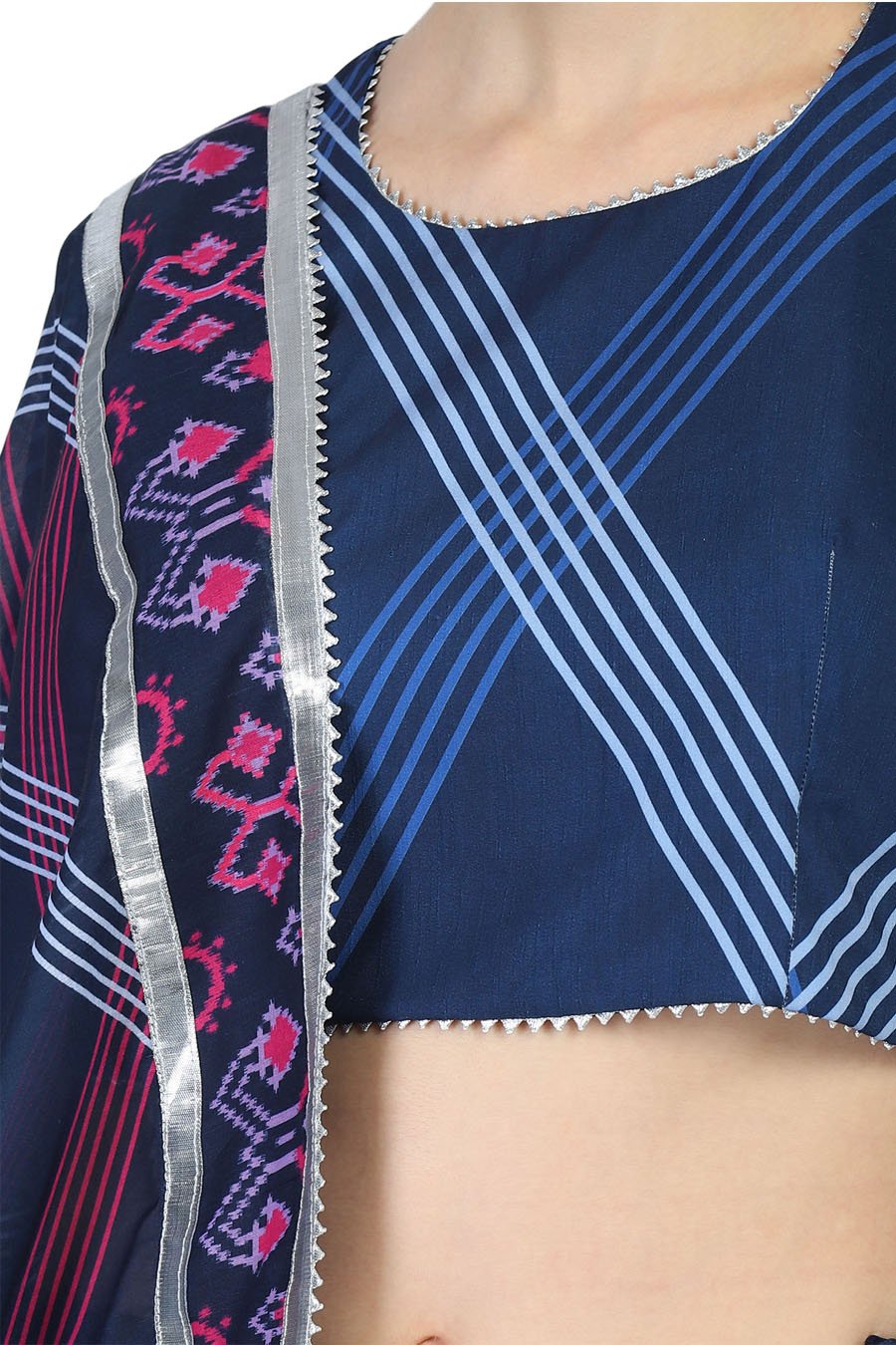 This beautifully crafted Lehenga from the house of Kovet in blue and pink color has innovative and redefined Patola design by Digital printing giving a classy and traditional overall presence. The beautiful flamingo prints elevate your style quotient and balance your look. Embellished with gota work on the lehenga comes with deep cut back blouse and a beautiful dupatta. Ocassion : Festival Neckline : Sweet Heart Sleeves : Half Sleeve Closure : Chain Pockets : No Can be Custom Made : Yes Care Instructions :