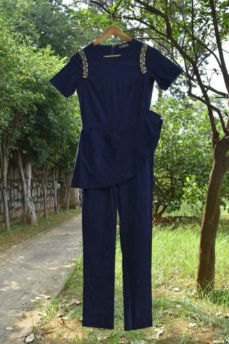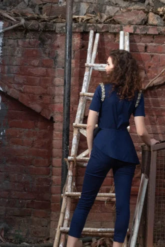 This Blue Peplum Jumpsuit is specially designed for Indian Bodies. For Weekends, for Work, for Parties. Jumpsuits are Summers easiest go-to option for every occasion. Pair this cotton Lycra Jumpsuit with Neutral Colour Stilettos and you are Set to Go.