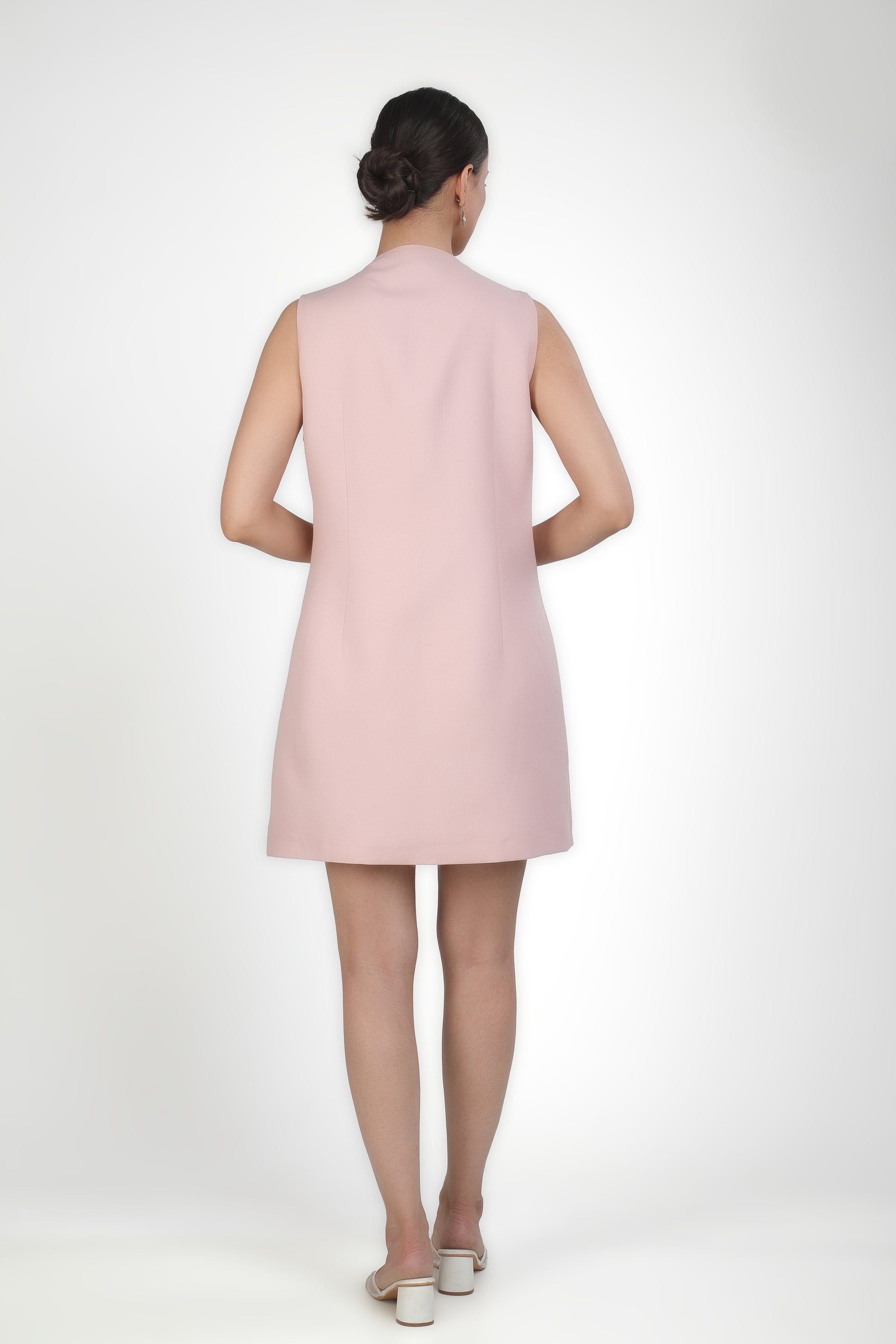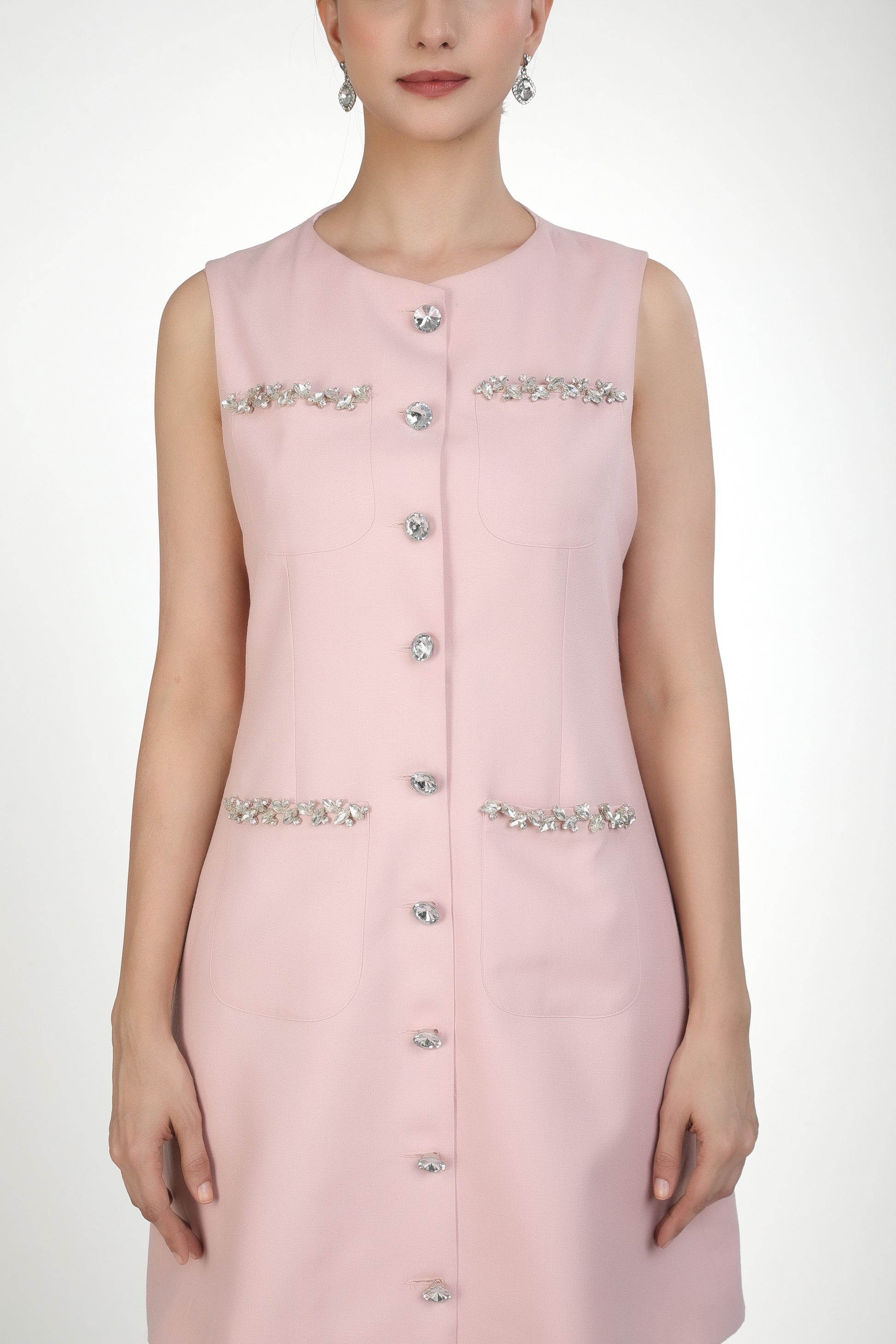 Featuring a blush pink embellished pocket A-line dress based in soft linen blend.