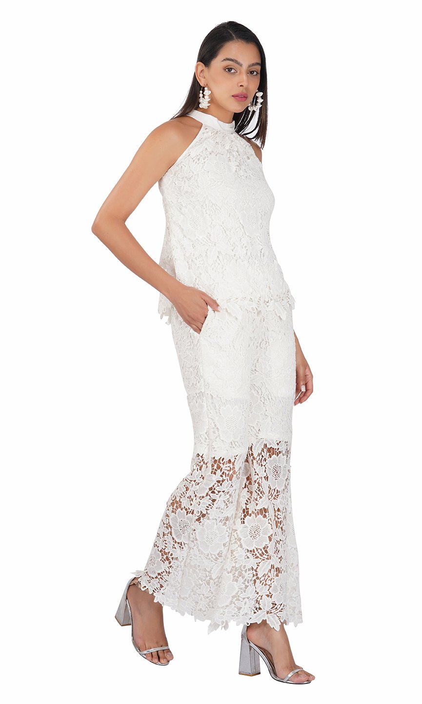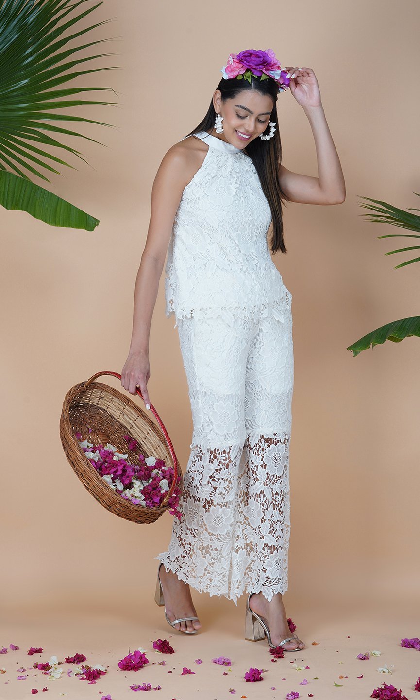 This lace halter top is perfect for your summer vacaition. The halter top is made up of fine imported lace fabric , you can pair it up with lace flared pants. Care Instructions :