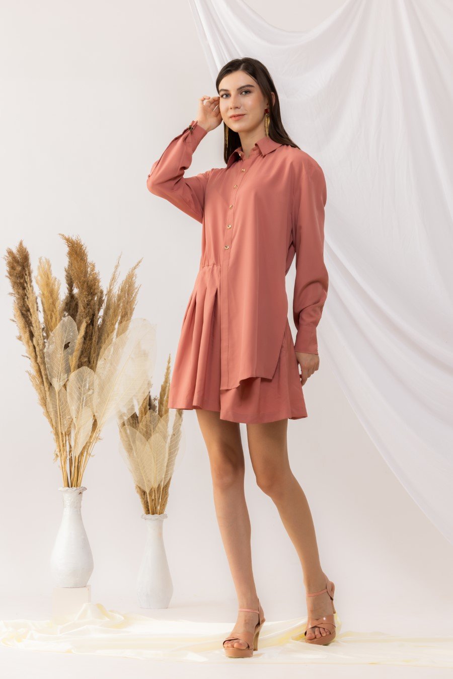 This features a coral rose shirt style collar neckine dress in american crepe with full sleeves and comes with side gathers. The valiento belt is used only for styling. It is not for sale. Size Available From XS To 3XL. Style Tip : This smart chic dress worn with a high heel or flats and statement jewellery to give a classic look. Care Instructions :