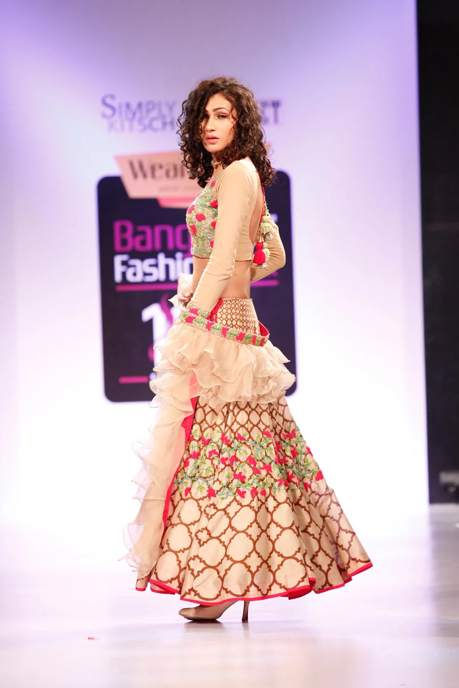 Featuring a gorgeous lehenga of digital printing with a beautiful hand embroidery paired up with stunning Lycra Embraided blouse, a light weight organza ruffle dupatta is adding a style to it.