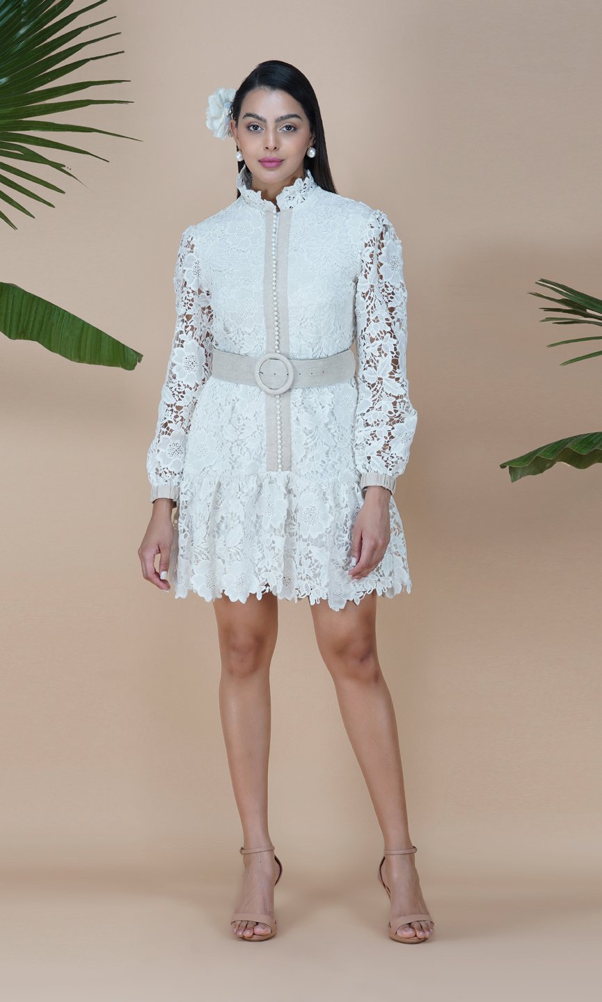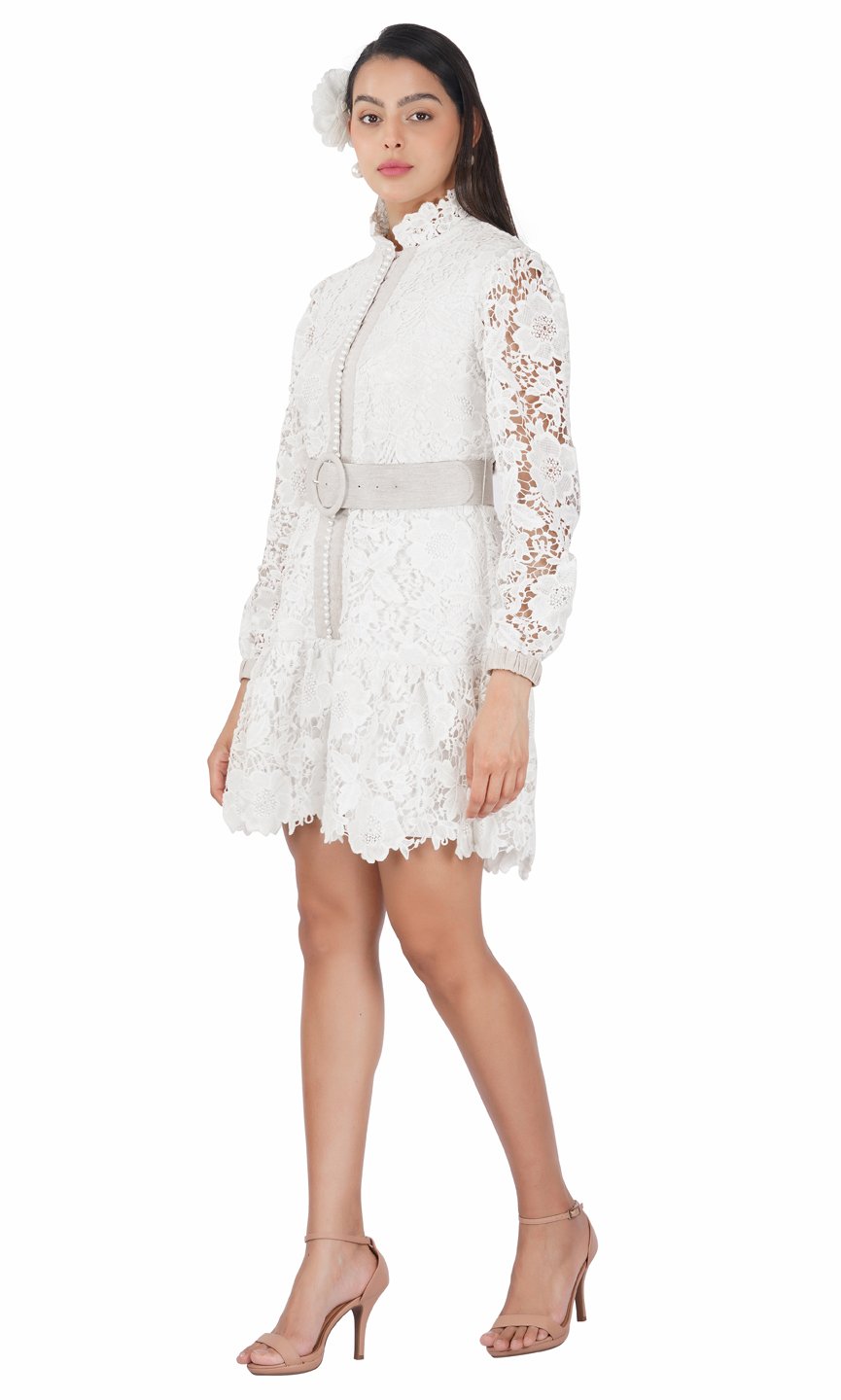 Featiring a summer runway outfit, a flowncy ruffle mid length dress with full sleeve. The mandarian collar dress is perfect for evening and lunch party. You can pair a belt to hilight your waist line. Care Instructions :