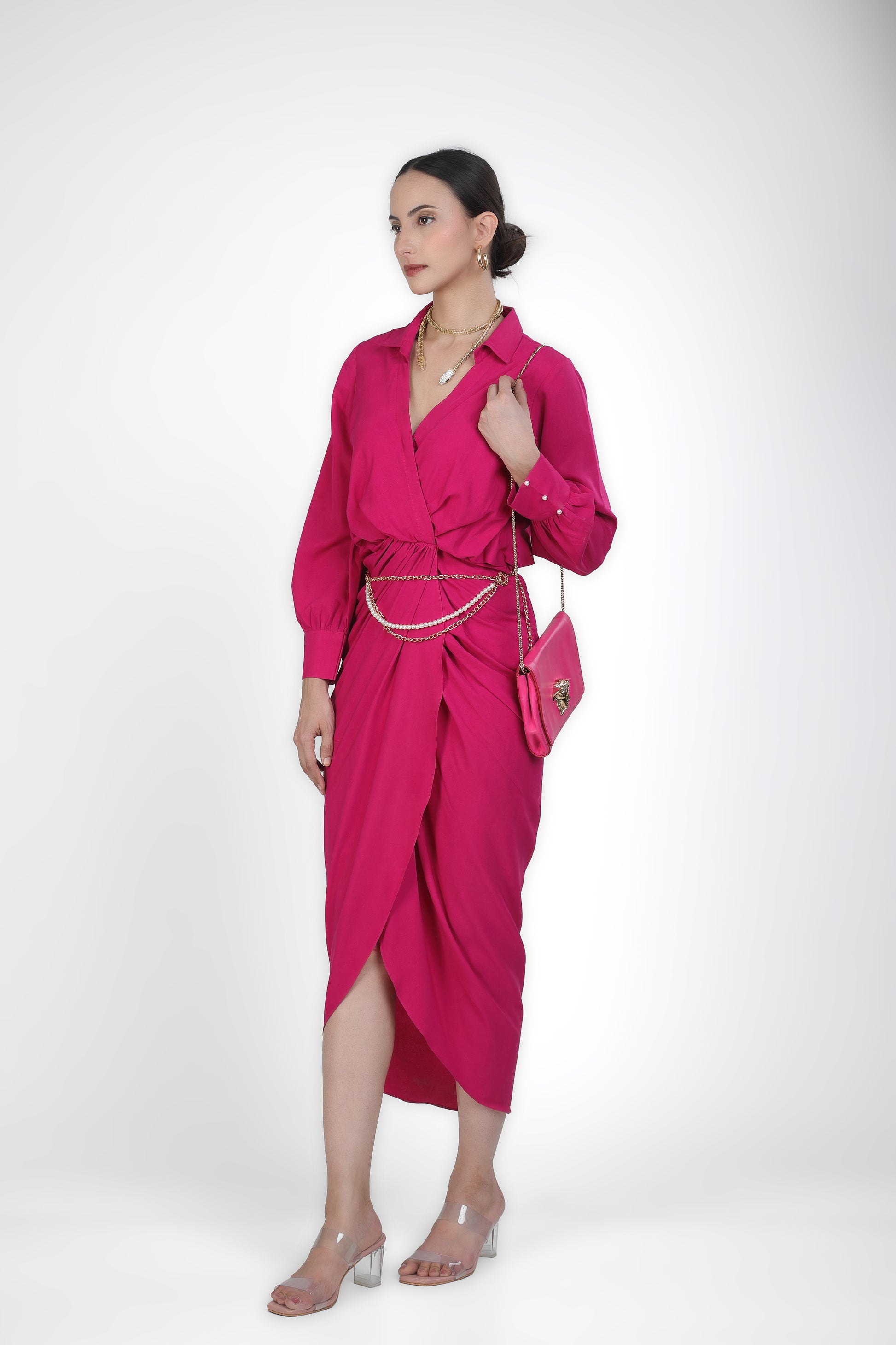 Fuchsia Draped Maxi Dress