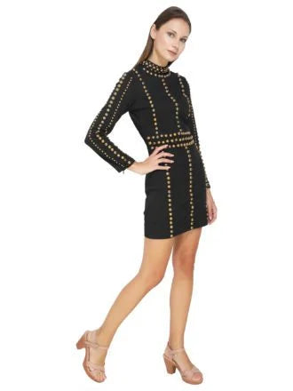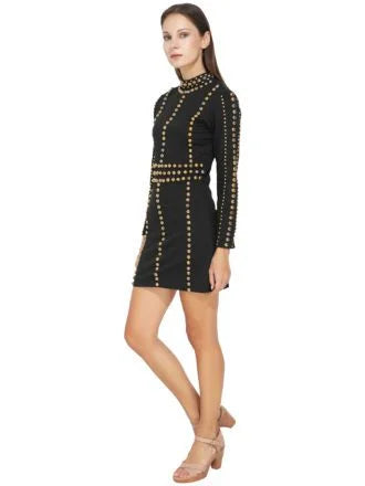 Gold Metal Studded Black Lycra Dress