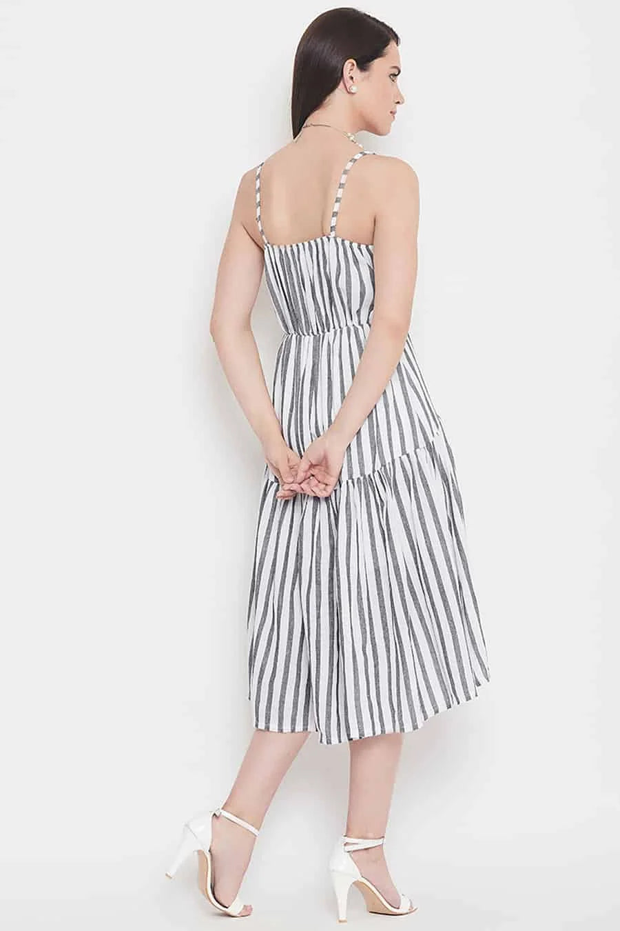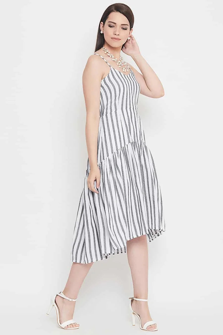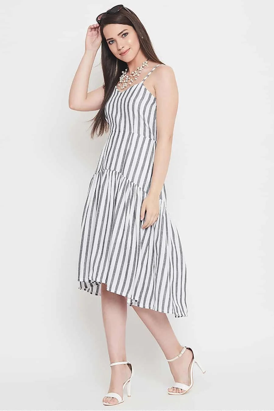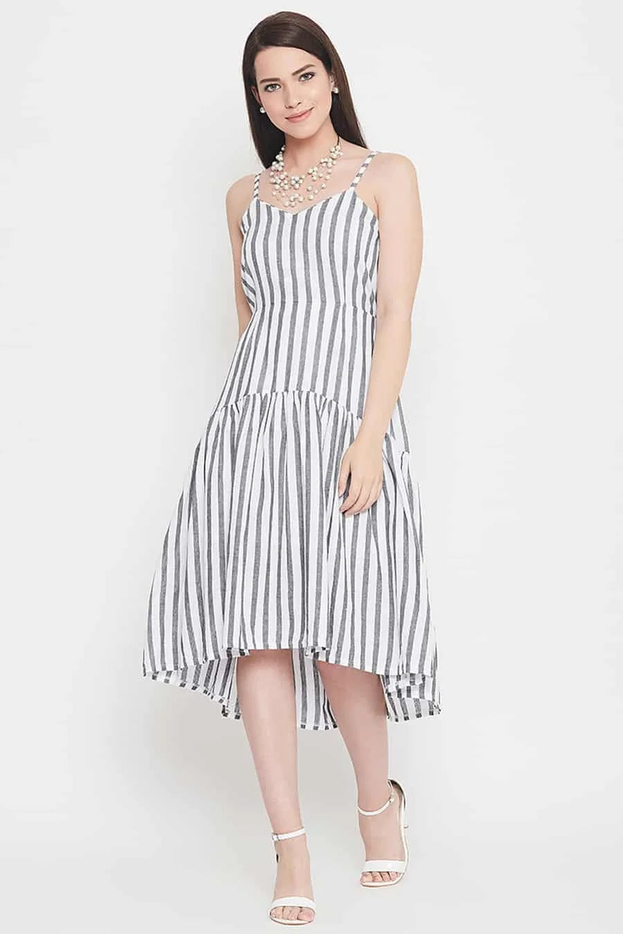 Grey and white striped high-low empire. True style never dies. This empire summery dress is perfect for a sunny day.