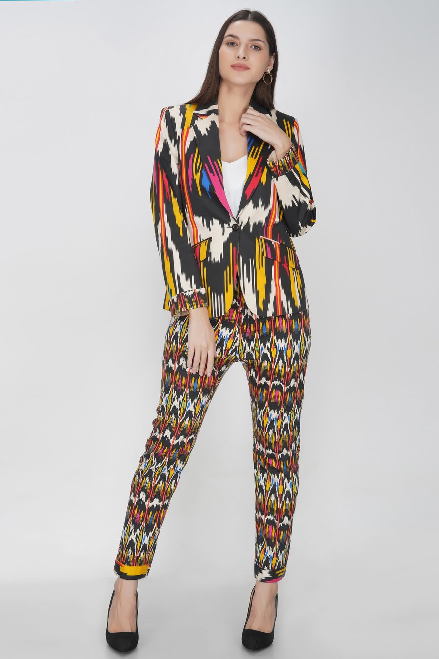 Ikat print blazer set
