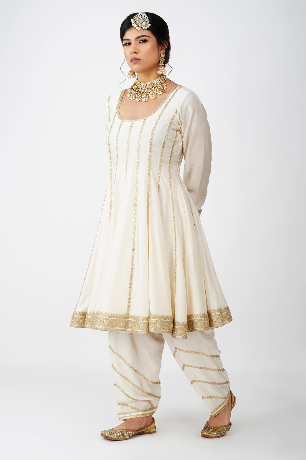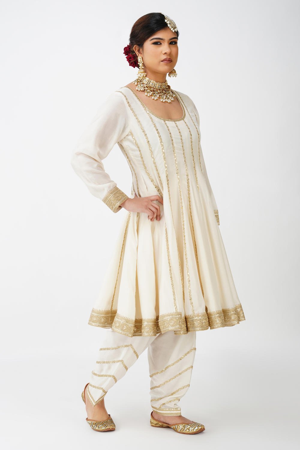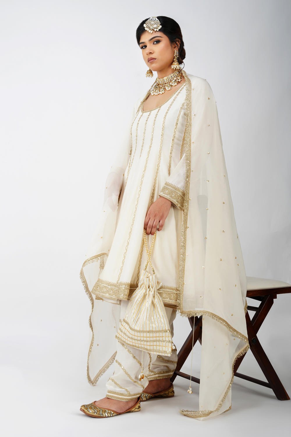 Elevate your ethnic ensemble with this set which includes a beautifully crafted short shirt with embroidered sleeves, complemented by a afghani salwar for a traditional yet chic look. Complete your ensemble with a stylish hand potli, perfect for carrying essentials while adding a touch of elegance. Crafted from premium Banarsi Jacquard fabric, known for its texture and comfort, this outfit is ideal for weddings, festive occasions, and cultural celebrations. Flaunt your style with this timeless piece that combines classic craftsmanship with contemporary elegance. Set Contains : 4 Product Weight/ Volume : 2kg Care Instructions :