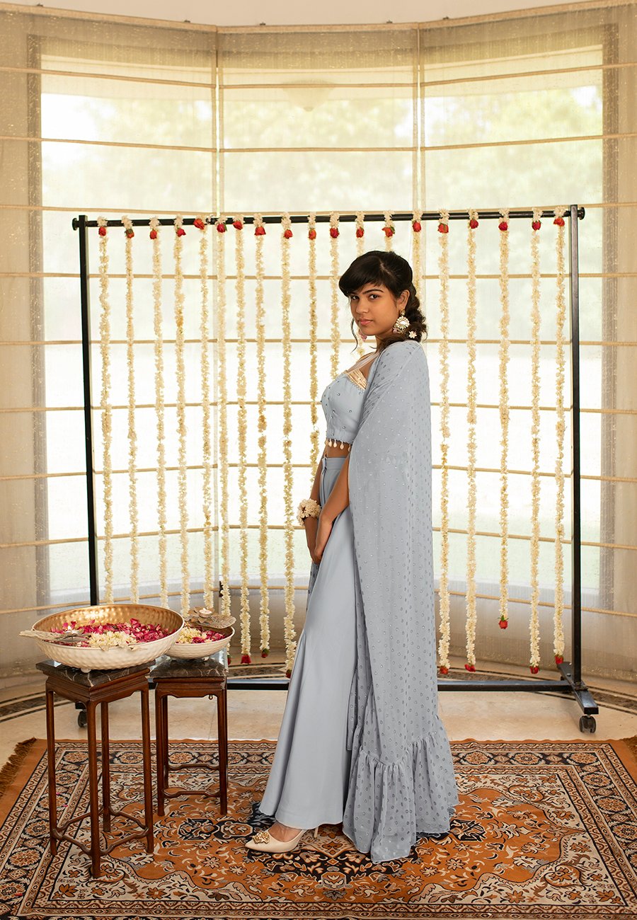 It is perfect outfit for any cocktail and mehndi occasion. You can style it with a nice kundan choker or kundan studded headband with a nice golden watch or bangels. Care Instructions :