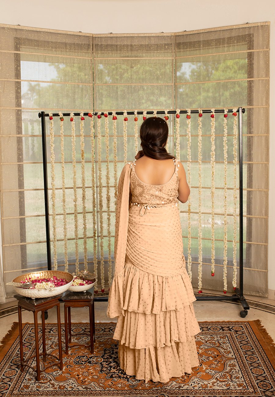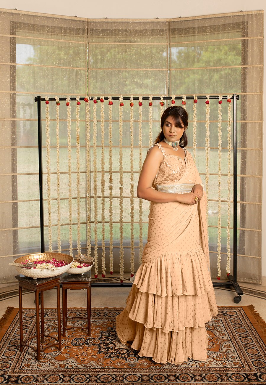 Kovet Peach Bud Layered Saree