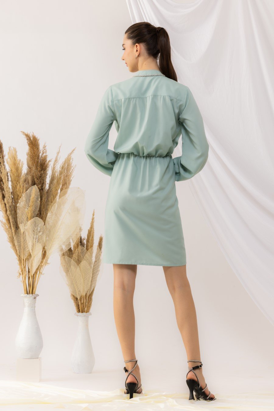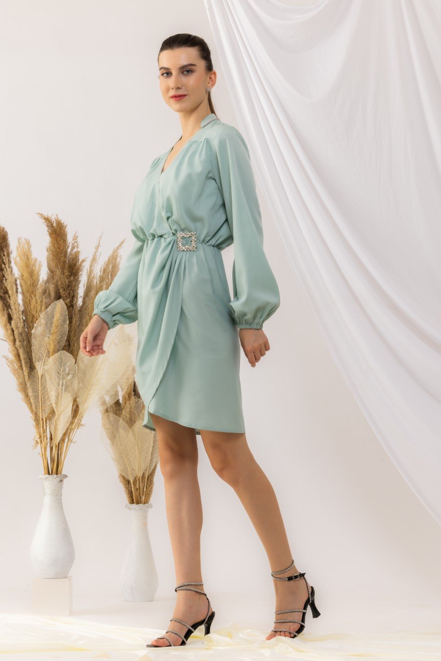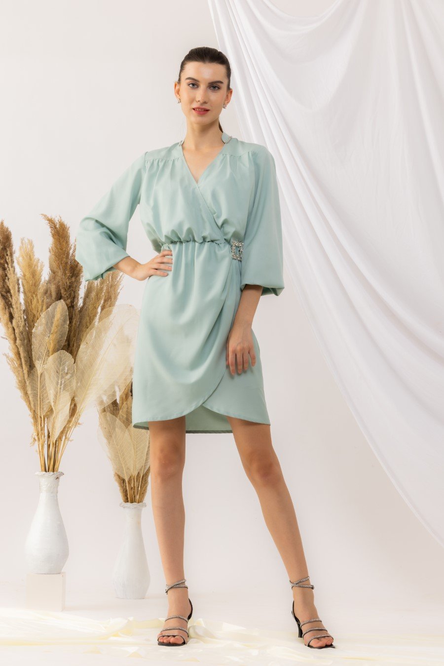 This dress in american crepe features an elasticated waist with crystal buckle on the side. Embellished with diamanté at the band of the neckline. Size Available From XS To 3XL. Style Tip : Go formal, elevate it with elegant jewellery and a pair of high heels to give that party look. Care Instructions :