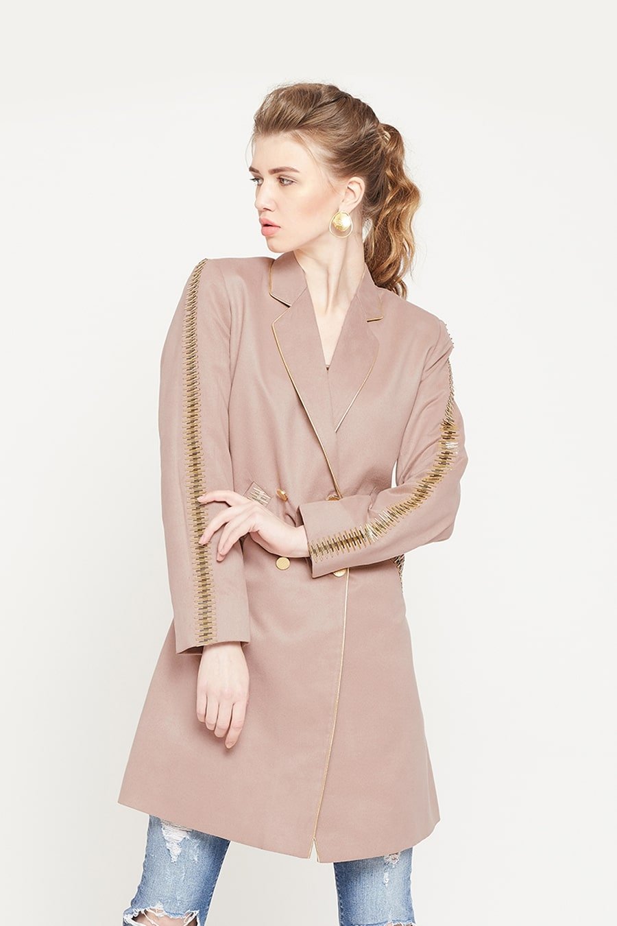 Winter Blazer for Women London Berry Classic Blazer for a modish look Embellished with Golden Piping on the Sleeves Golden Leather Piping on the Collars