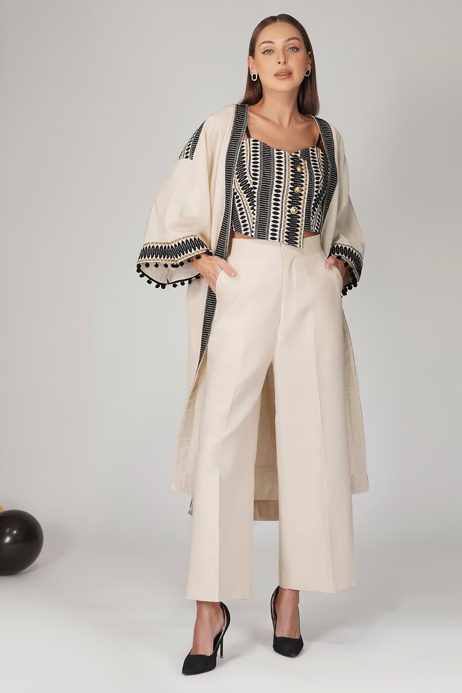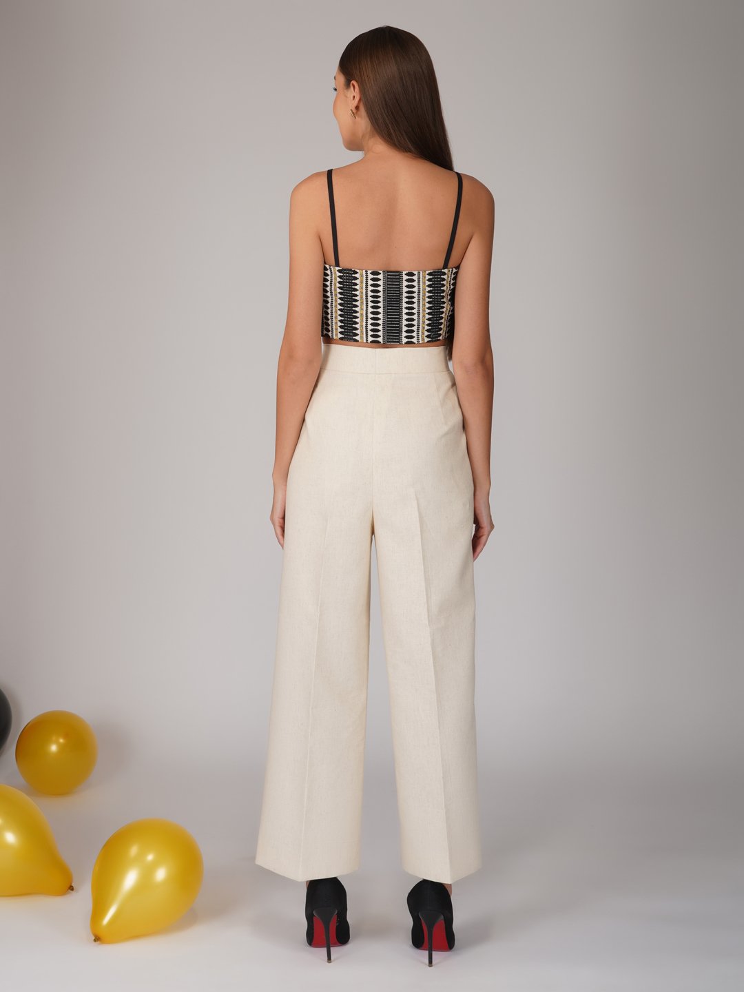 Overlapped crop top styled with gold button. Made in weaved cotton loom fabric. Concealed zip at the side. You can pair it up with trouser or a skirt. Care Instructions :