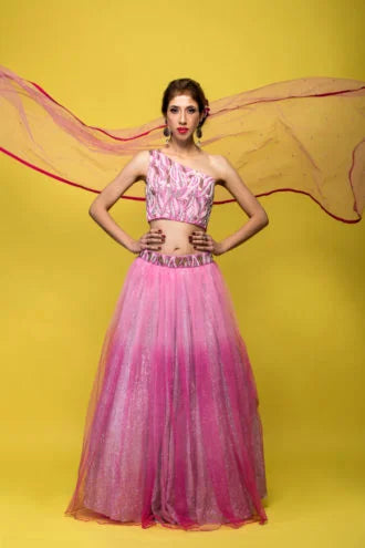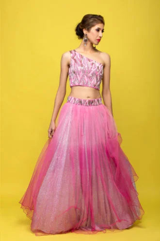 One Shoulder Sequence Lehenga