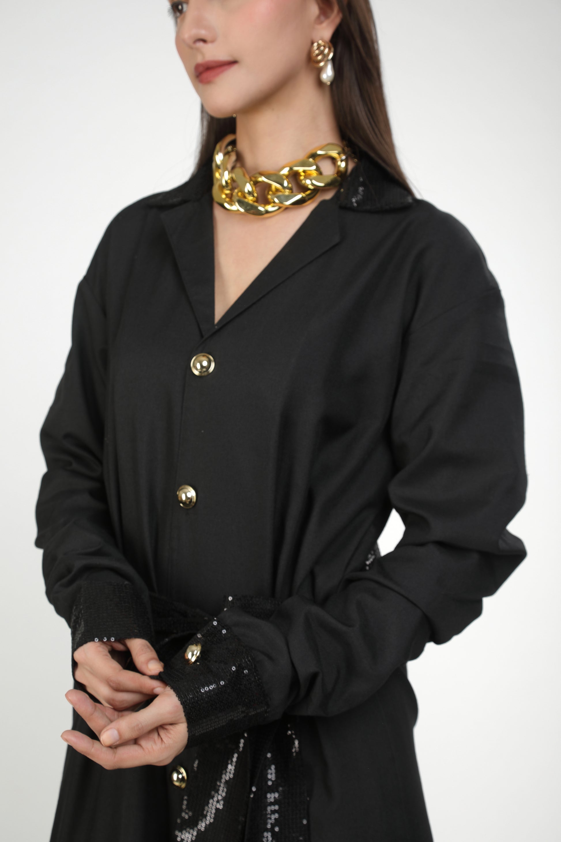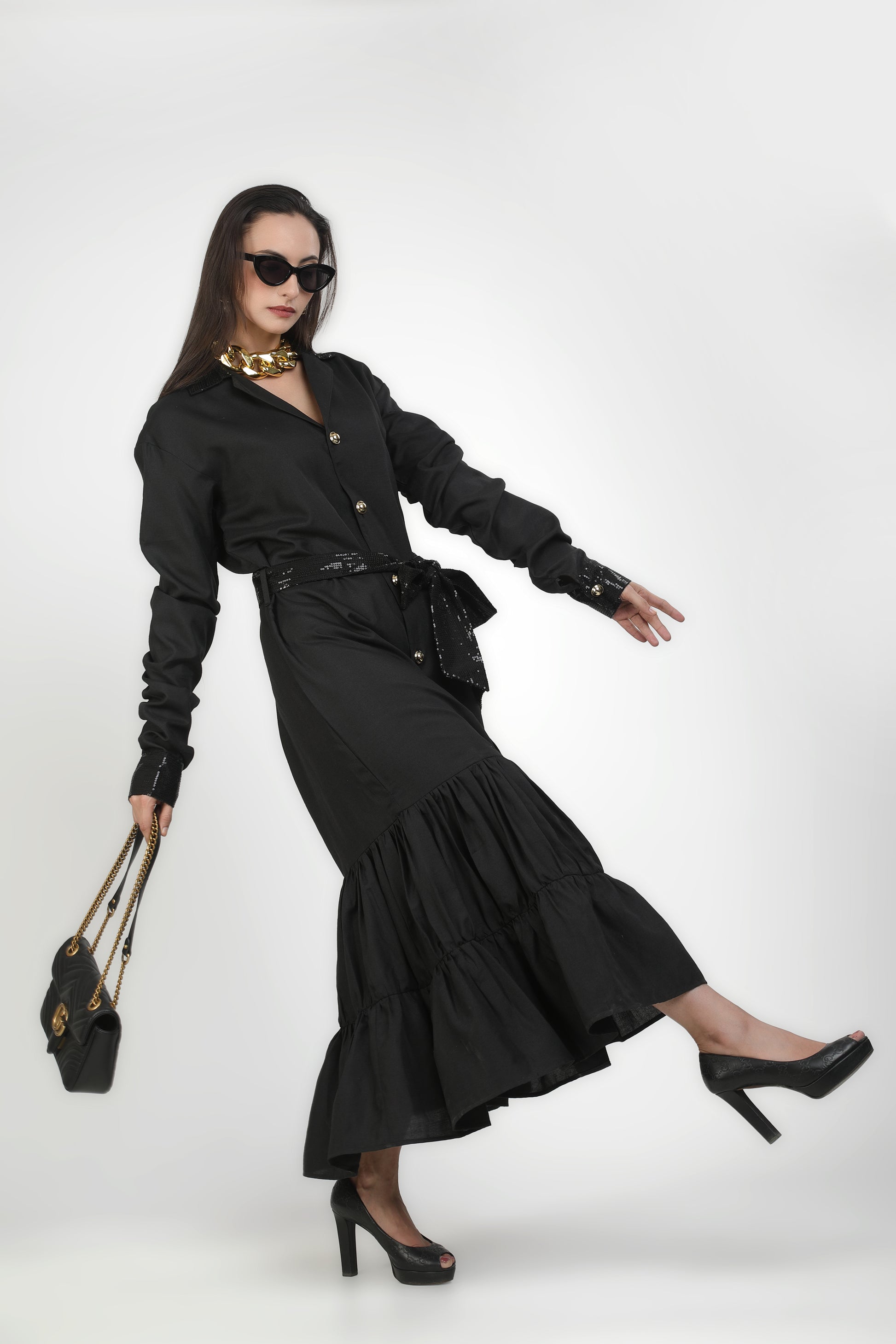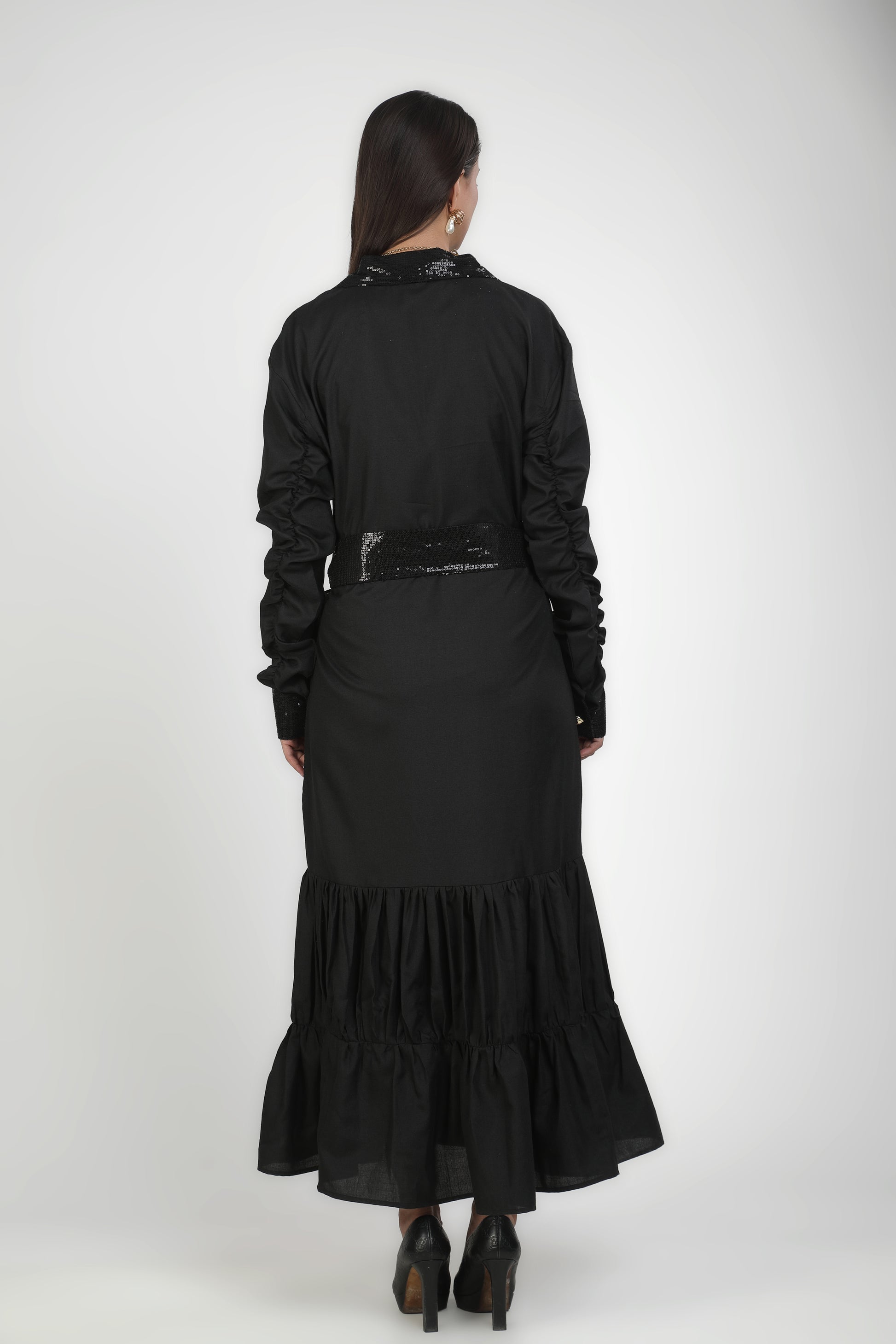 Onyx Collared Buttoned Tiered Maxi Dress