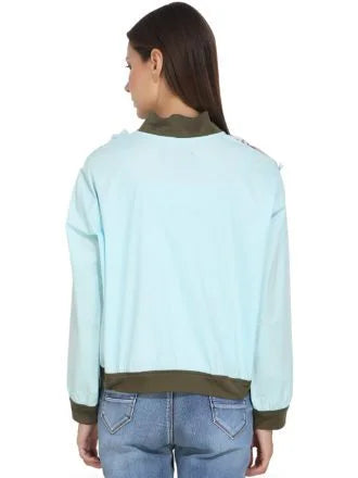 Full sleeves Boomer Jacket With Front Opening and Highlighted Collar, cuffs and Hem.