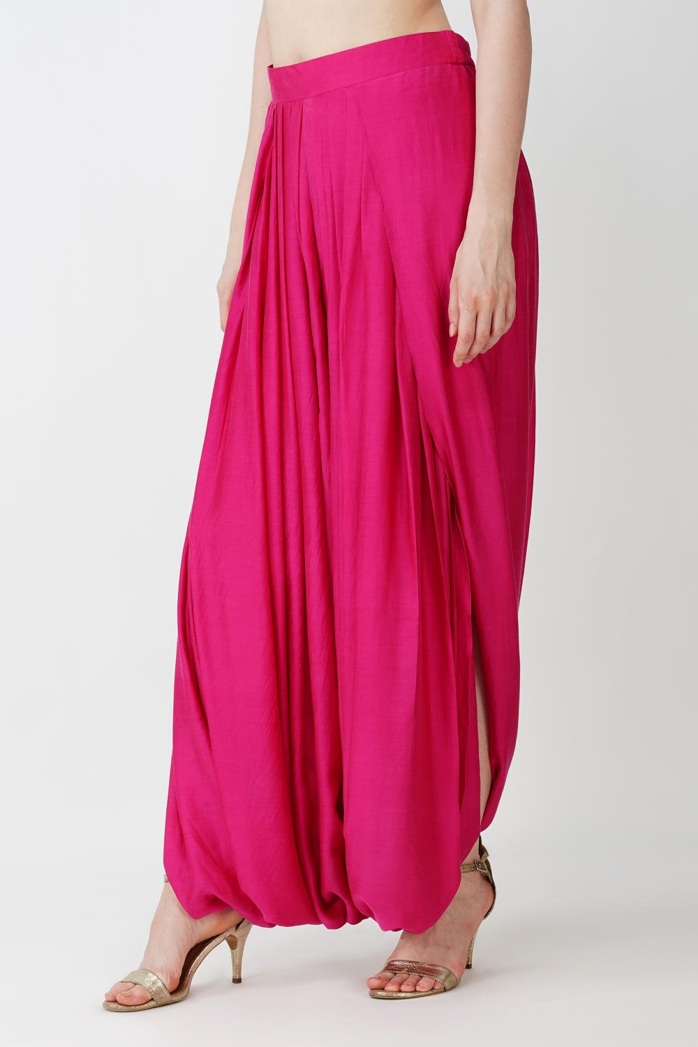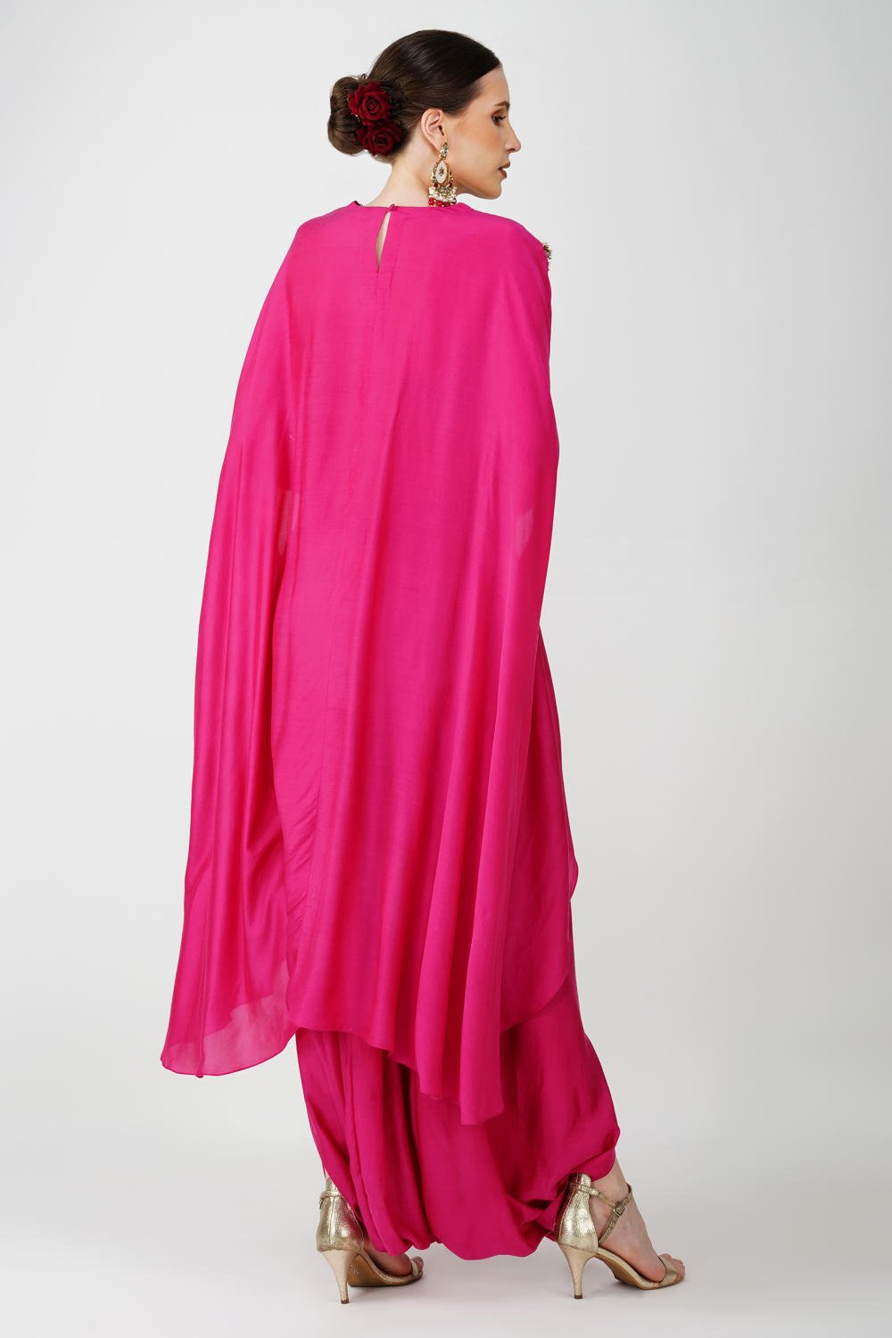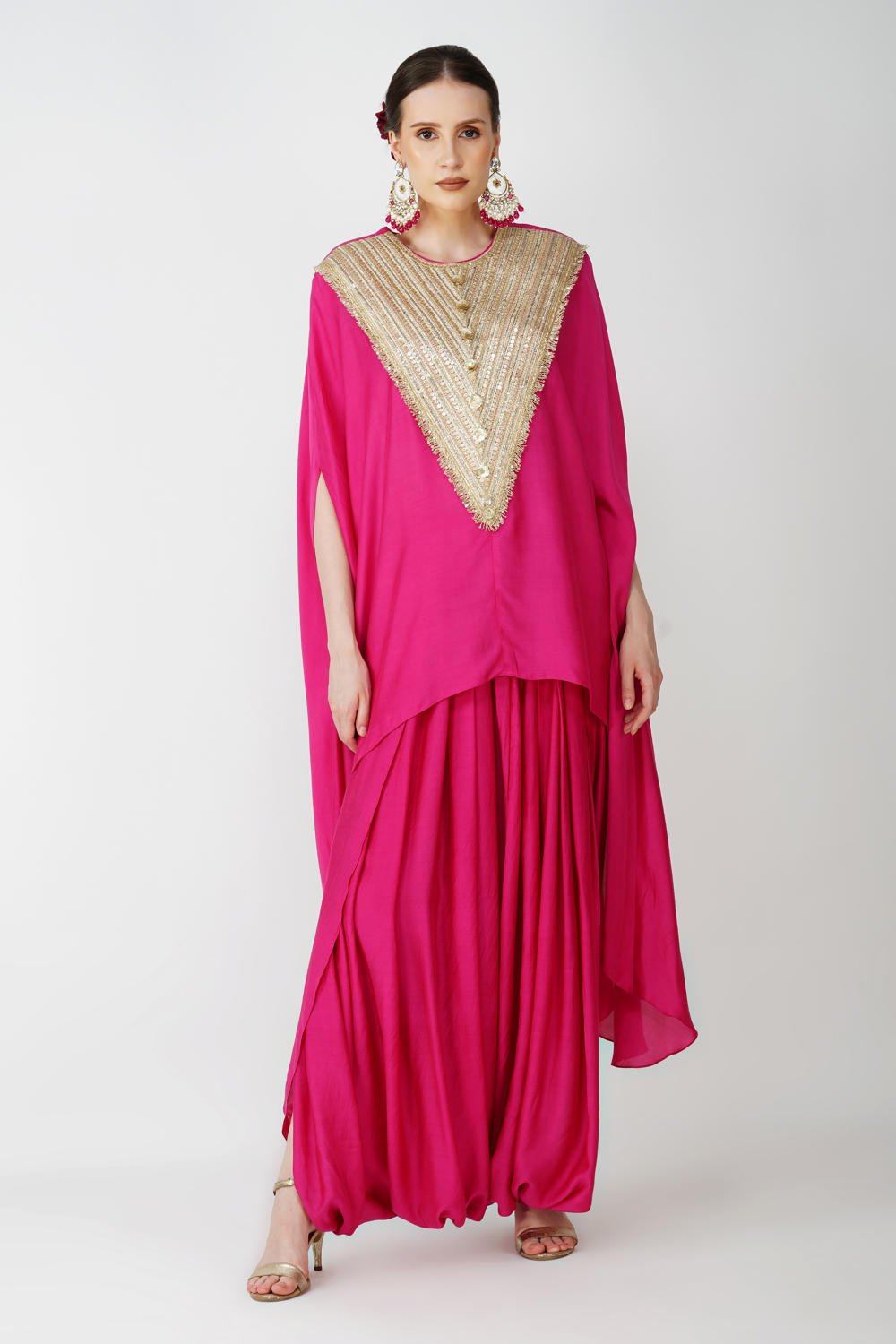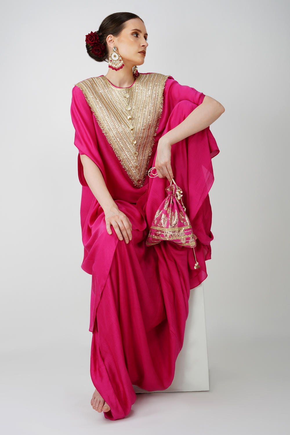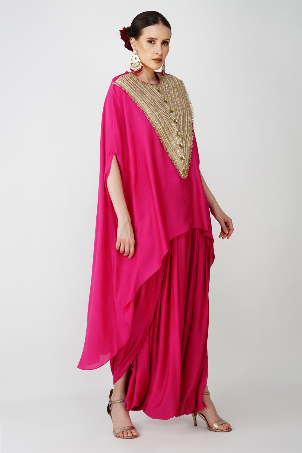 Royal Fuschia High Low kaftan with cowl drape skirt