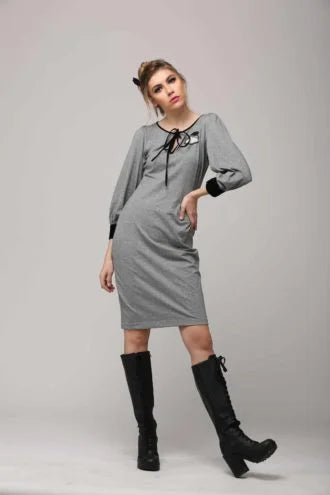 Peasant Dress - Grey Imported Hosiery Knee Length Dress.