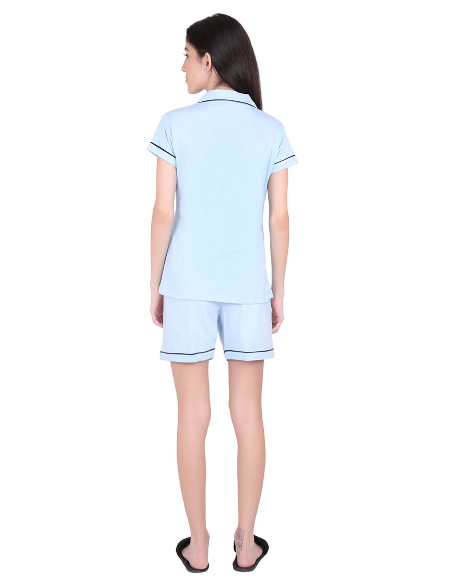 Solid Sky Blue Stylist Night Suit Set