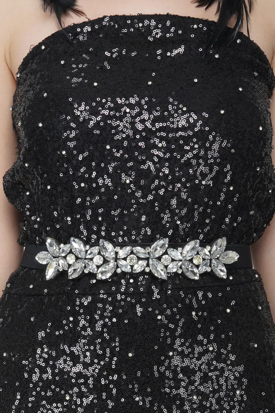 Complete The Look: Make a name for yourself this season when you wear this gorgeous dress. Wear this sparkly black piece with Kovet cocktail dresses online, Style it up with Silver Jewel Belt, some strappy heels, and Feather Earrings your favorite and perfect for a party look.