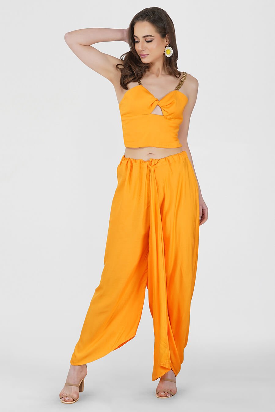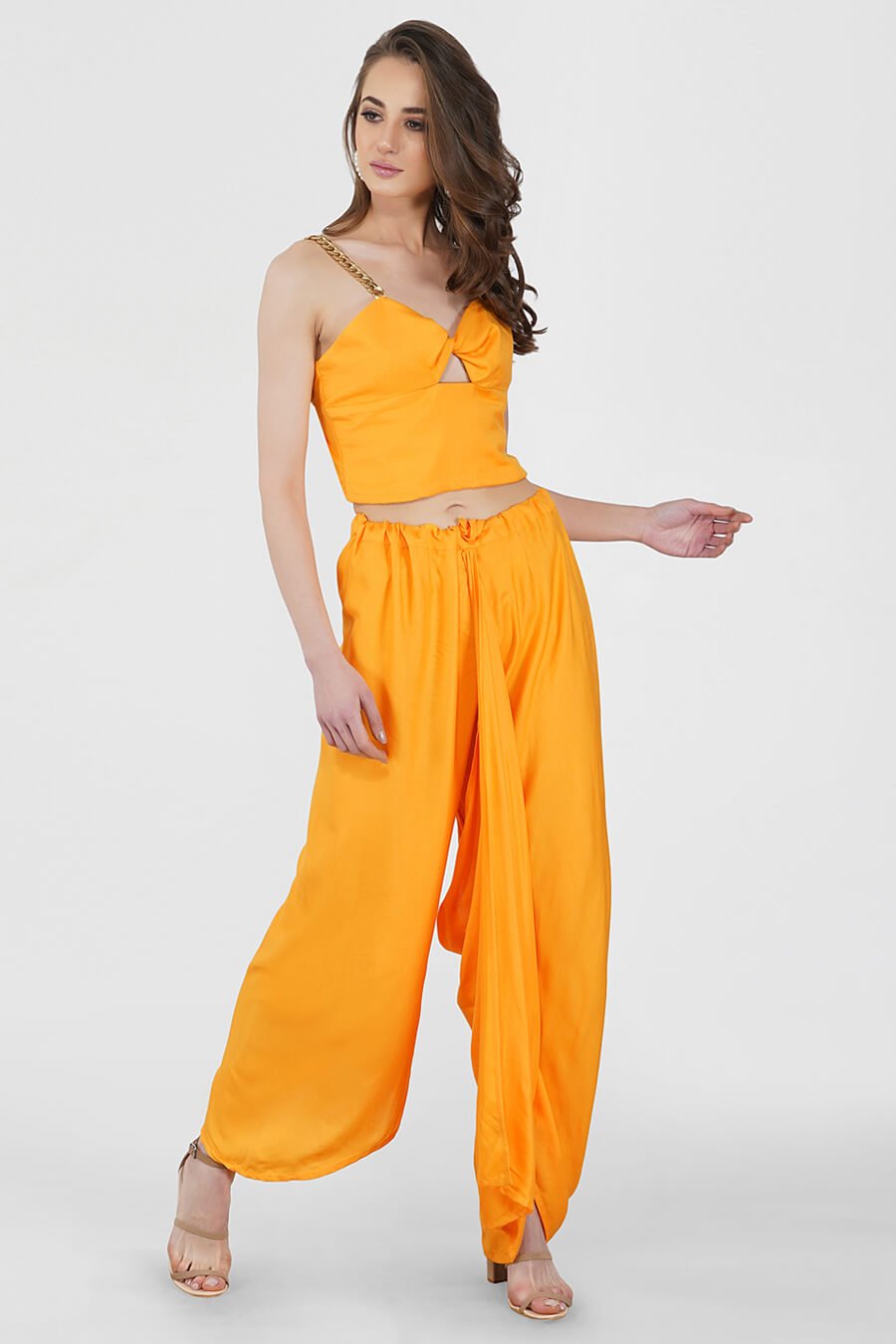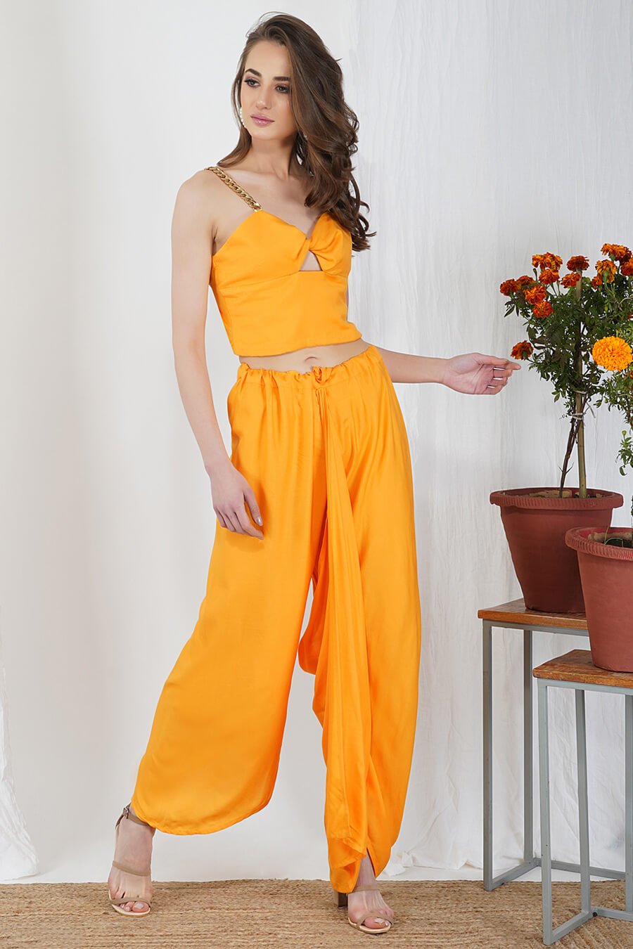 Upgrade your closet to include this latest trendy top which itself looks like an adornment that can be paired with baggy dhoti pants or fitted silhouettes for more polished looks. Care Instructions :