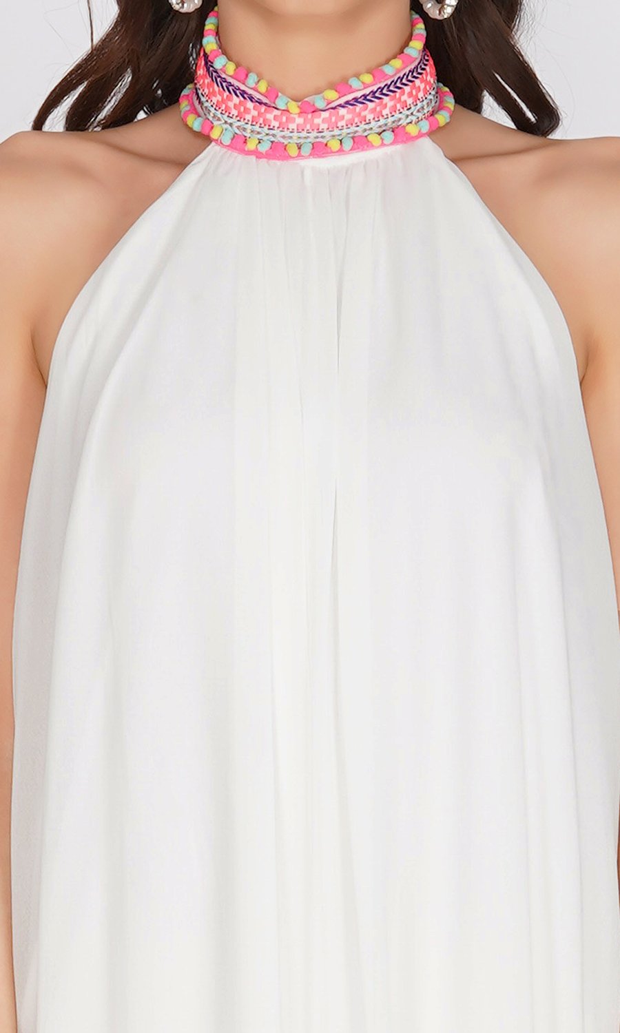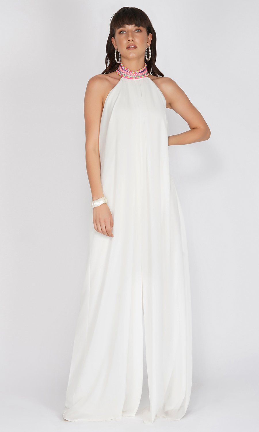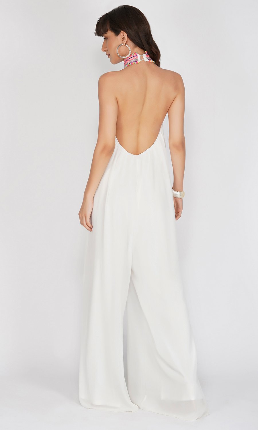 White Jumpsuit is a one-piece garment consisting of a blouse with attached trousers. It is very comfortable clothing option for summers. The Blue Trims on the Jumpsuit is makes it very attractive. Care Instructions :